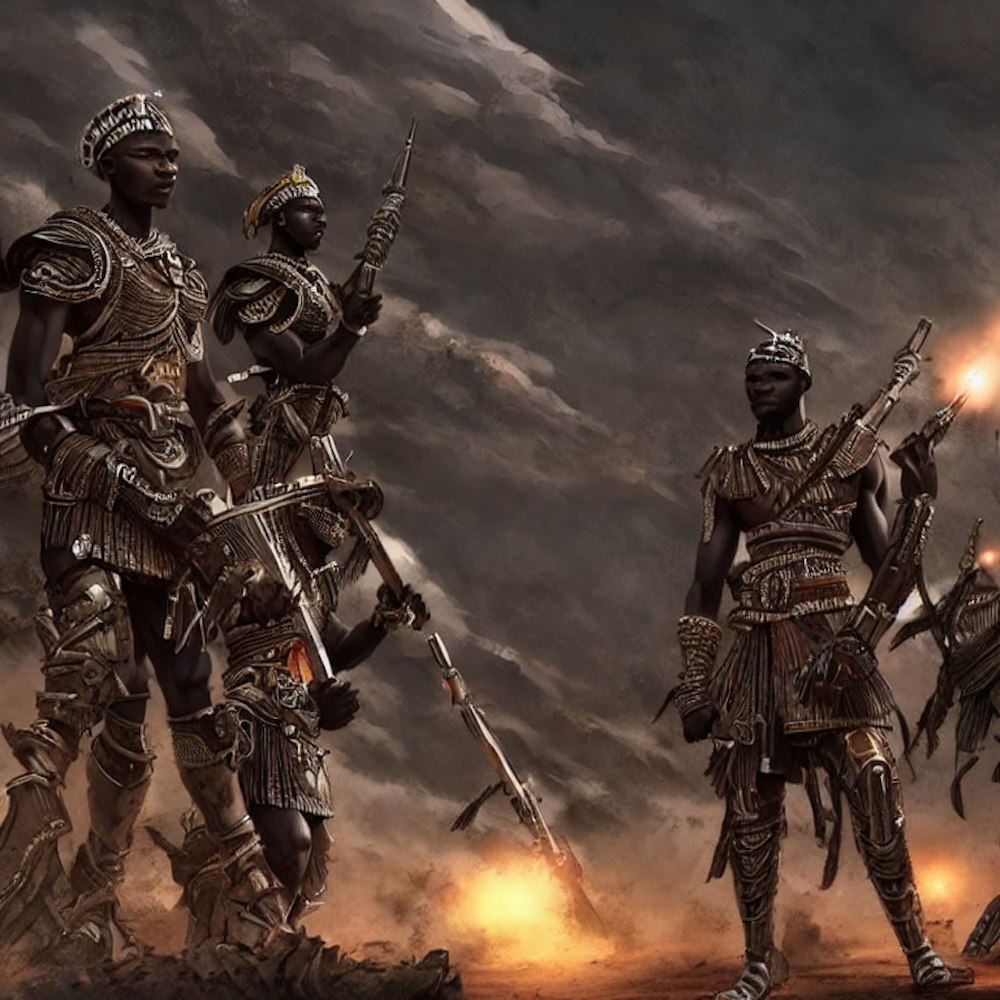 African warriors in the middle of a dangerous war in the future ( futuristic)�