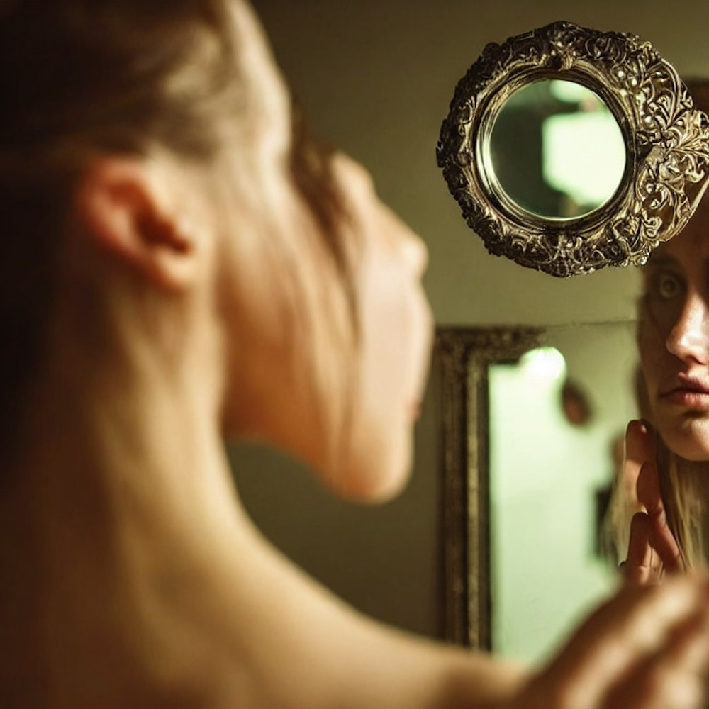 woman looking into a broken mirror