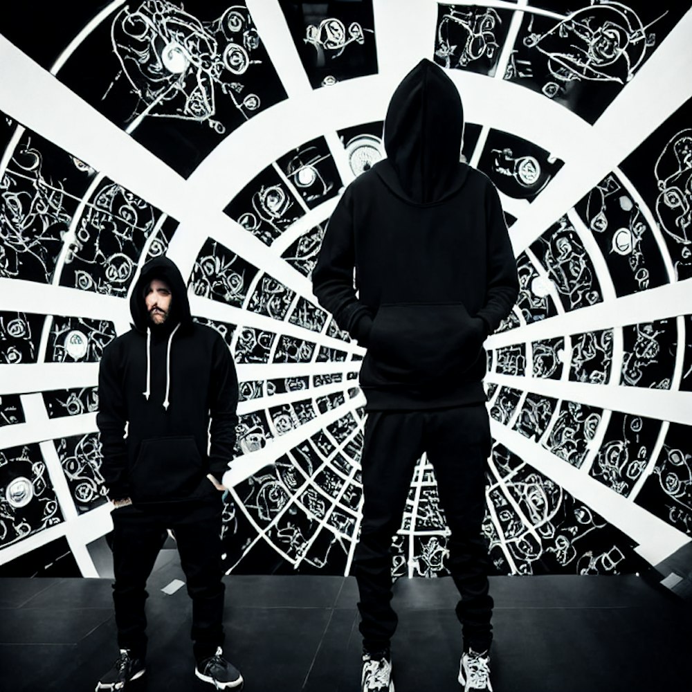 Man in black hoodie surrounded by clocks