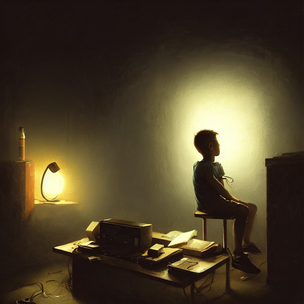 boy listening to music in the dark