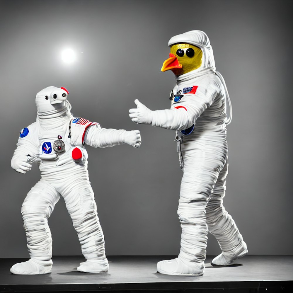 Chickenastronaut on a stage