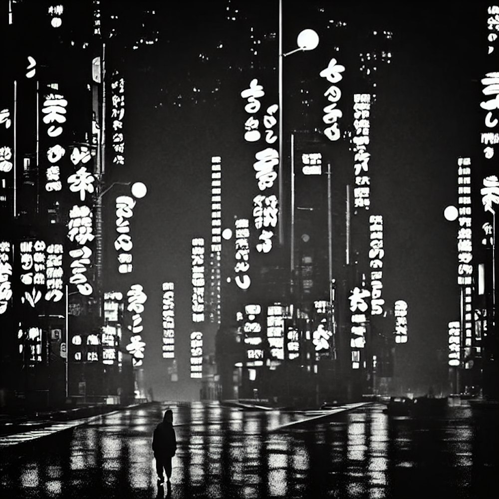 Osaka, 4 am, Sobeks walking home from distant factory, fog, citywide blackout, tilt-shift, moonlit cityscape photography, nocturnal photography, textured lighting effects, no cars, no streetlights, only illumination from moon and stars, contemplative Sobek in foreground in bokeh, Gaussian selective blurs --ar 3:4 --weird 160 --v 6.0 - @trianglefruitbat (fast)