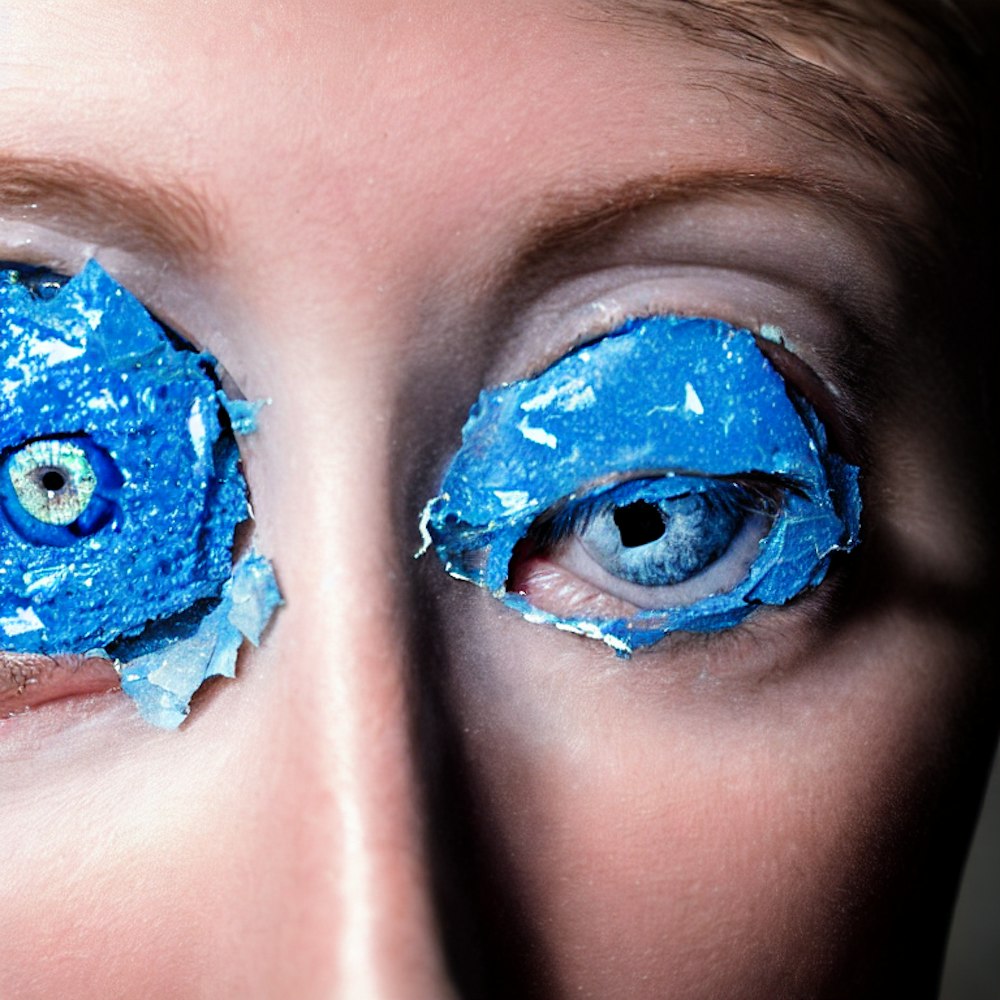 a human blue eye made of shattered glass