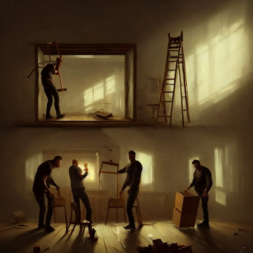 3 guys moving furniture with there minds