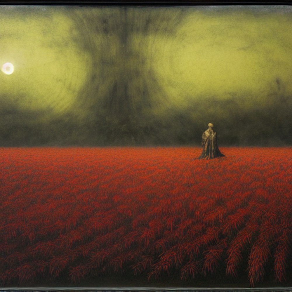 Raven, eclipse, red sky, farm, horror, cornfield, by Ayami Kojima, beksinski, Amano, Francisco Goya, Beksinski painting, Adrian Ghenie, Takato Yamamoto. Greg Rutkows, detailed, classicism, intricate, detailed. jean pierre ugarte, albert bierstadt, karl he