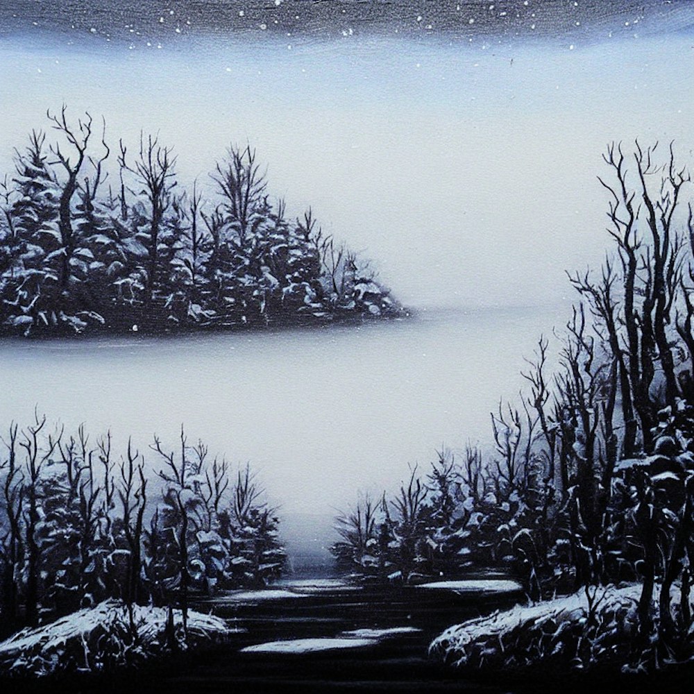 black metal and Burzum type snowy landscape painting