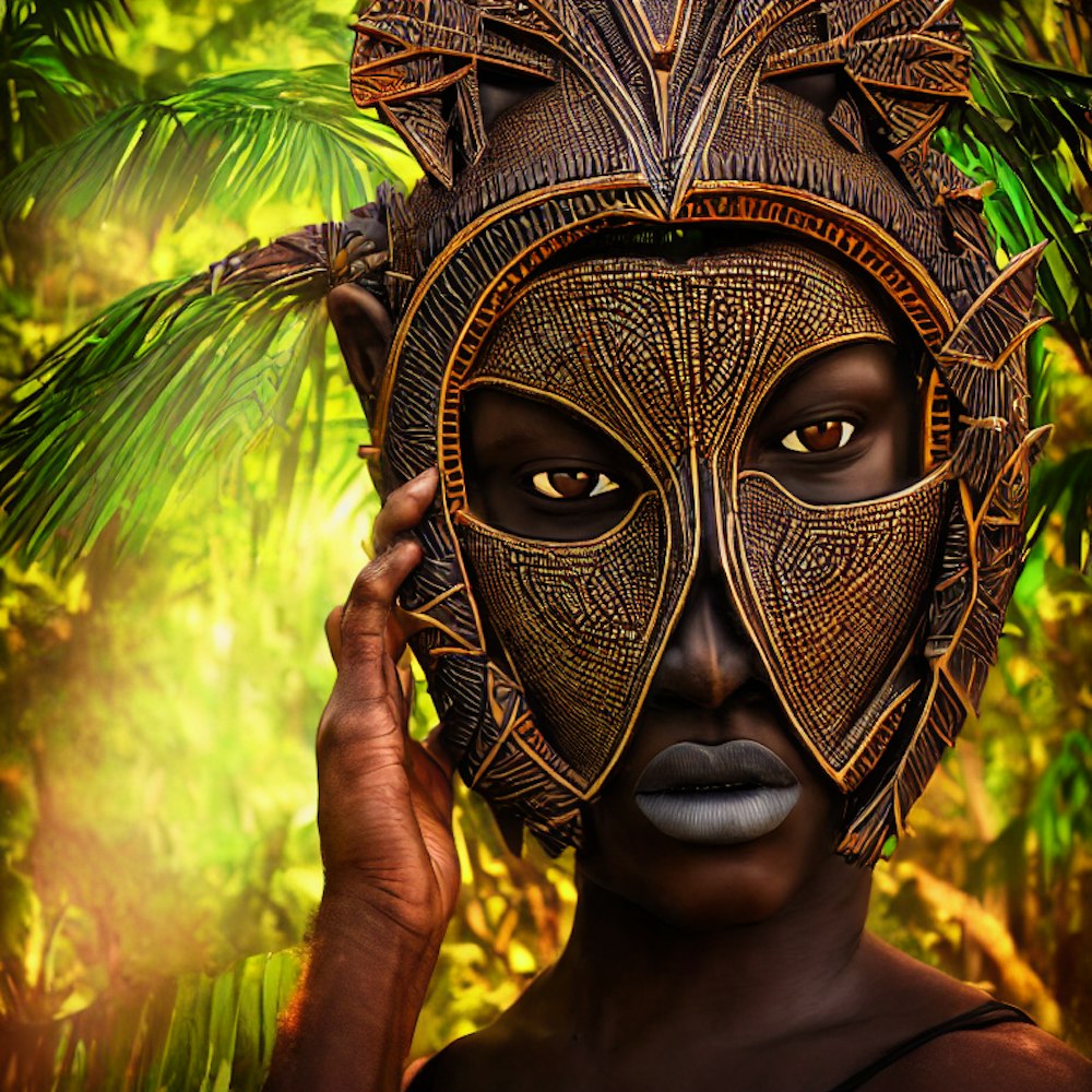 african mask in the jungle