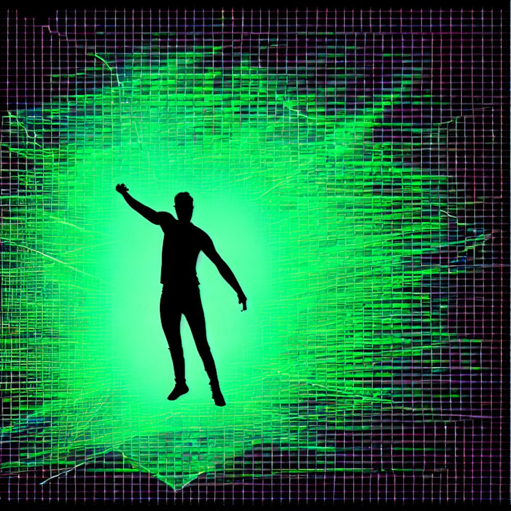Solo Male break dancer light shadow silhouette on 80’s big neon grid lines 4k, hd.