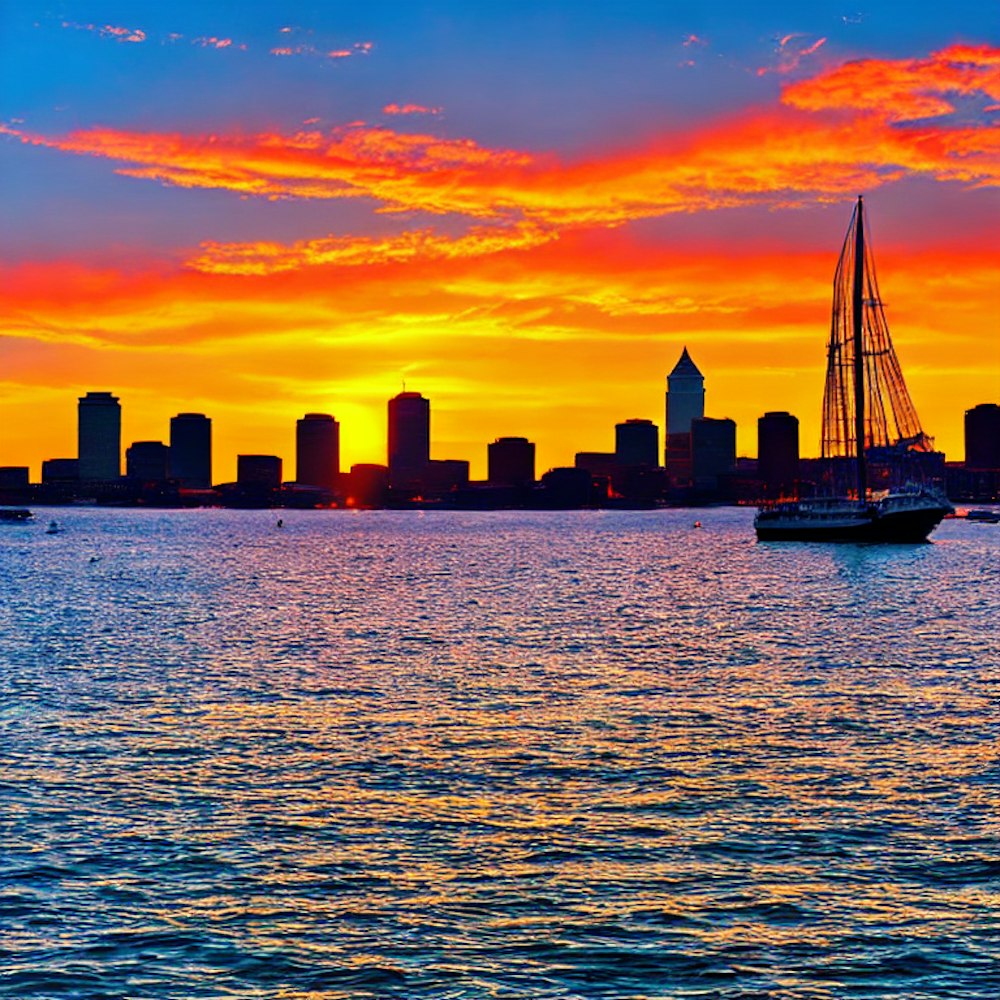 Boston Harbor sunrise, colorful