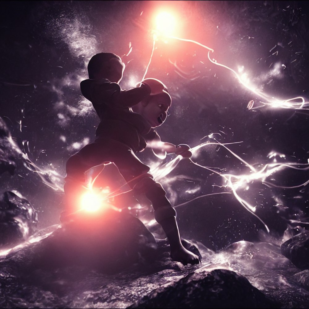 Boy fighting the void