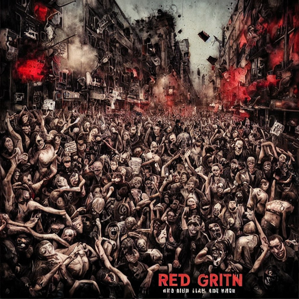 an album cover thats kind of grim and graphic but its about a riot, something that is doesn't have so many people in it but also have a concert happening in the background