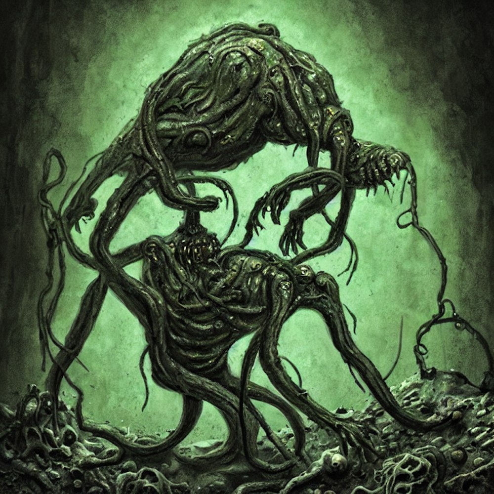 a disgusting eldritch style creature, staged in front of a grungy green concrete wall, in the midst of a sisyphus punishment body horror art, in the style of realism