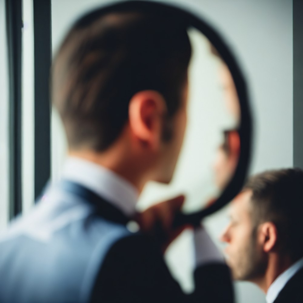 A sideview image of a well dressed business man looking into the mirror