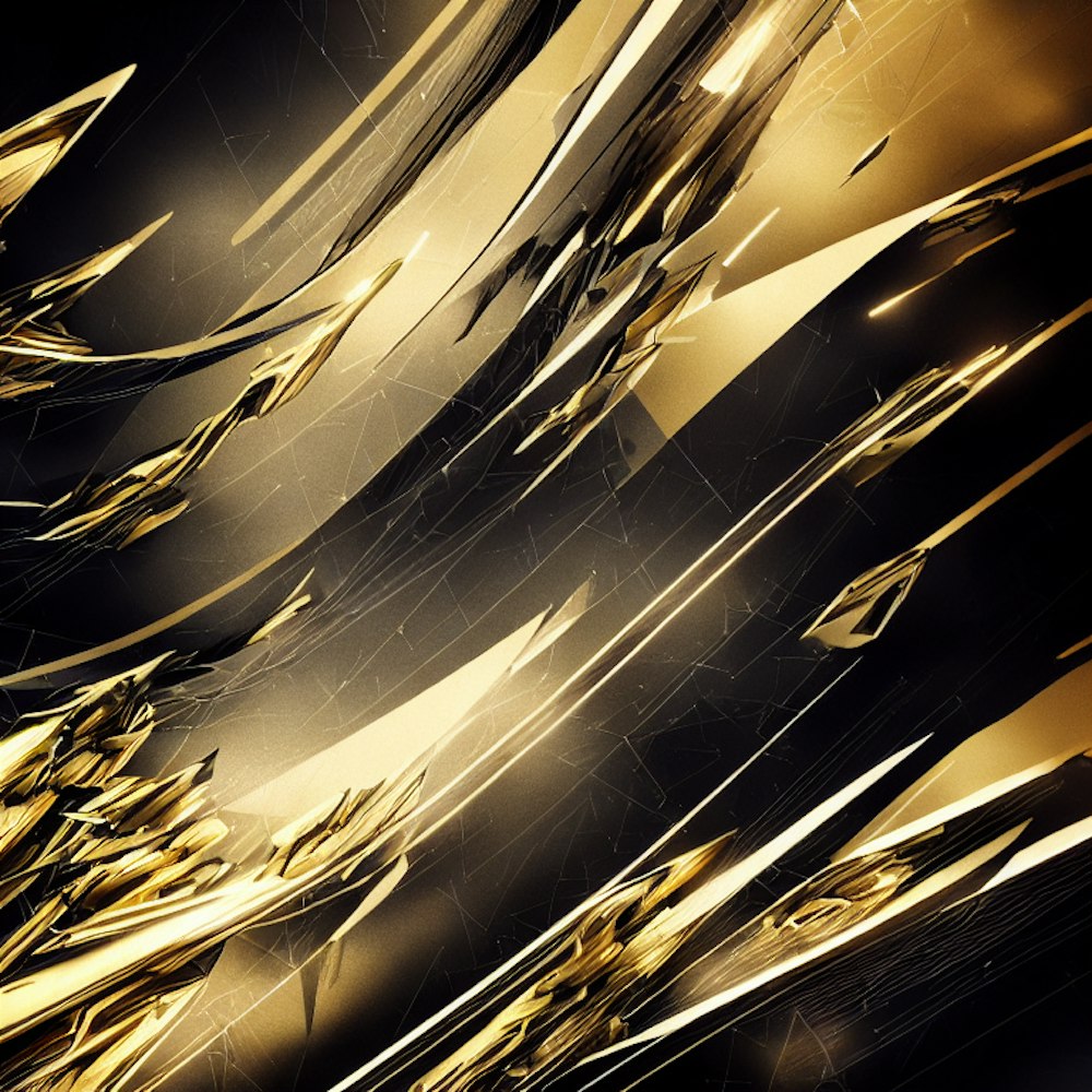 abstract colors and shapes, dark gold and grey, in motion pose