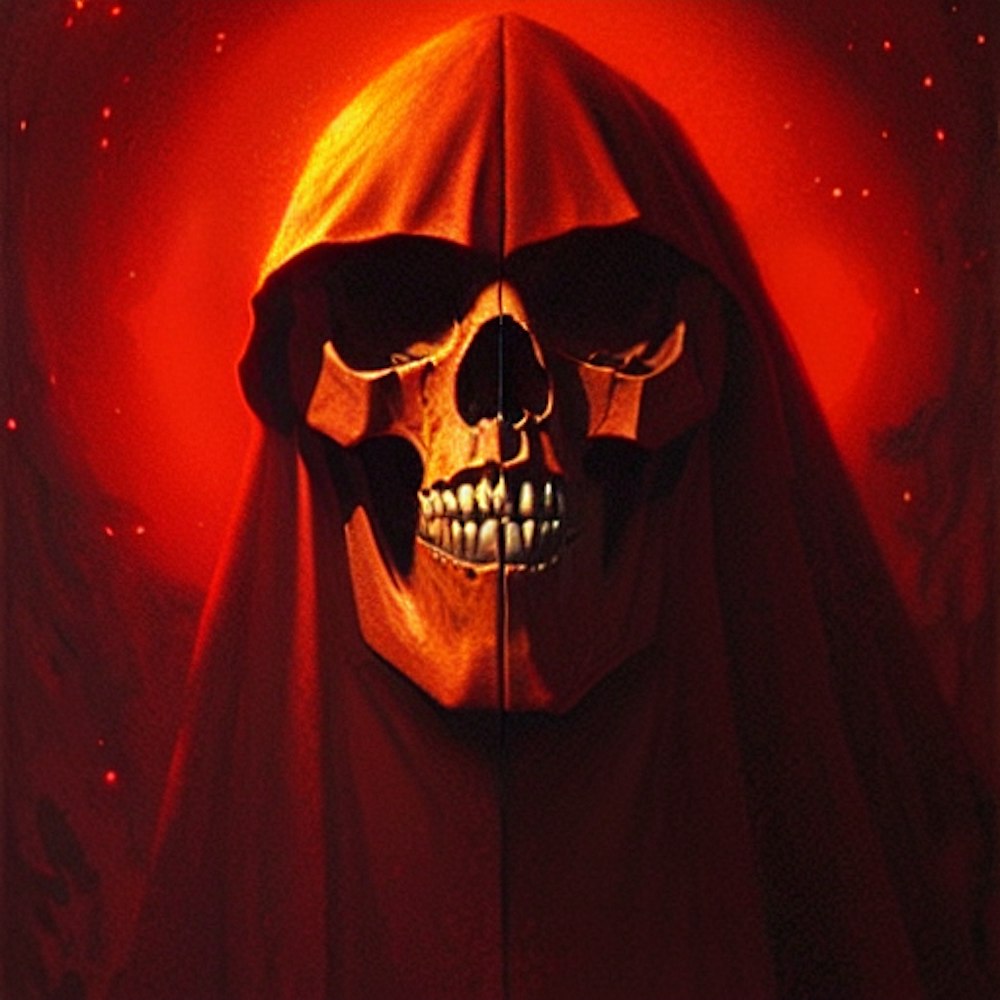 Doom skull face, red cape, Gods of creation, heaven, surreal, space, light rays, galaxy, space, stars, comet, horror Gustave Doré Greg Rutkowski,