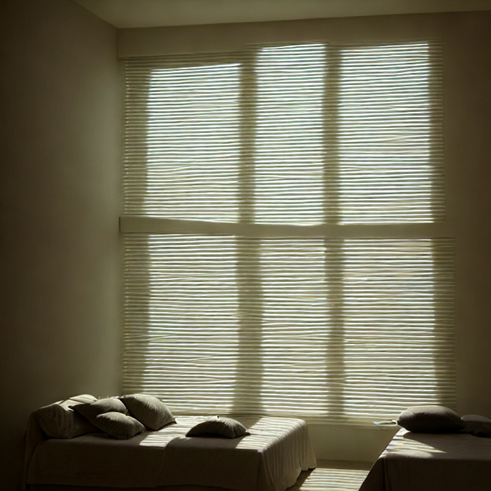 window blinds with people kissing