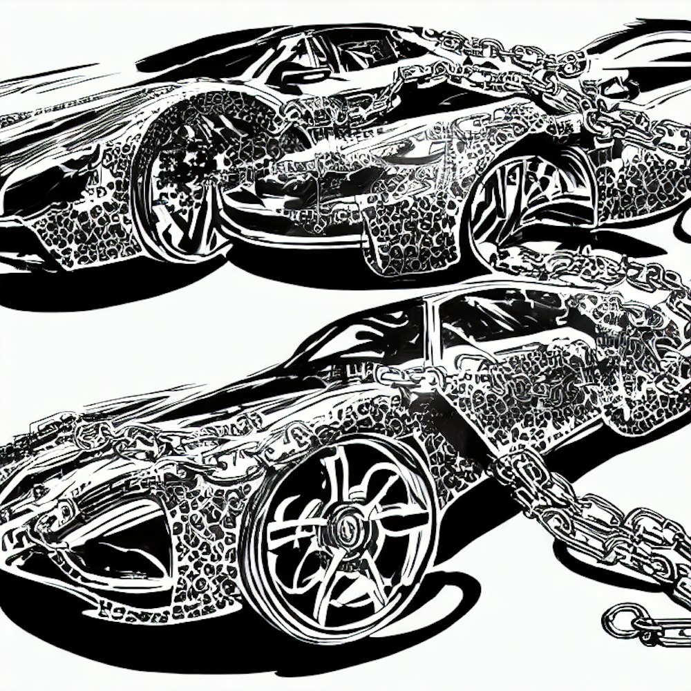drawing of a cool song cover for a rap song with luxury things, money, cars, chains, etc.