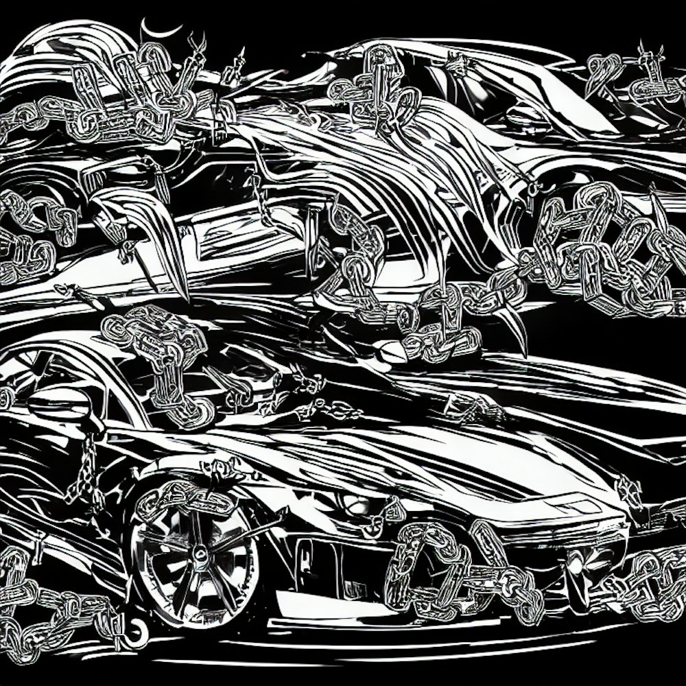 drawing of a cool song cover for a rap song with luxury things, money, cars, chains, etc.
