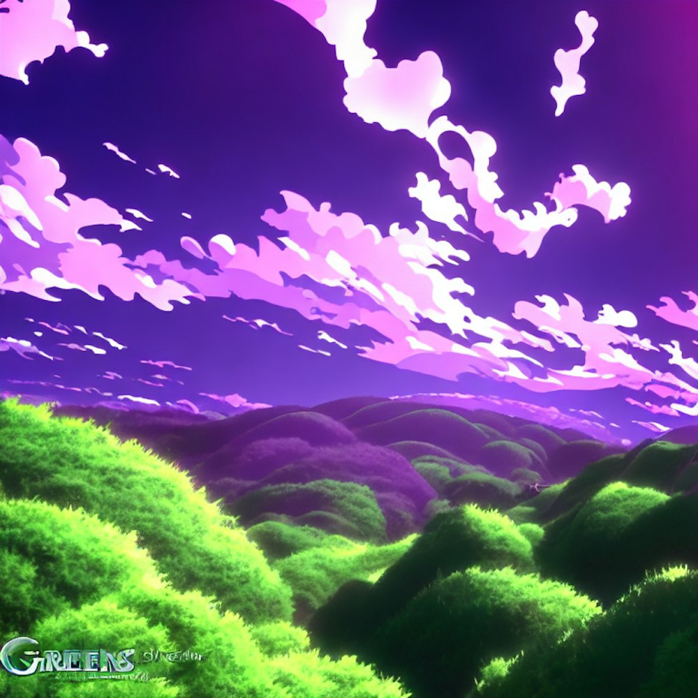 Green hills purple skies anime