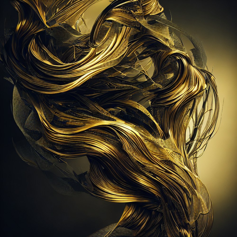 abstract colors and shapes, dark gold and grey, in motion pose