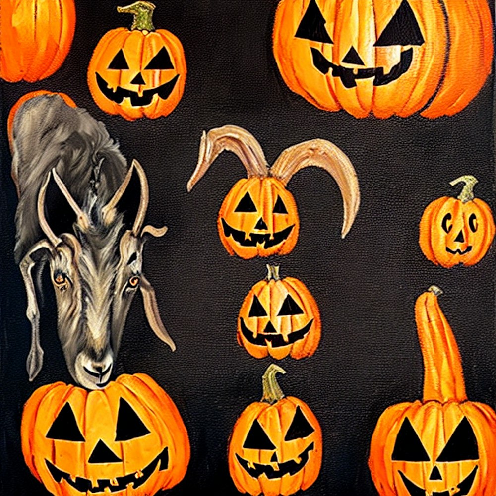 Goat head and jack-o-lanterns in black and orange