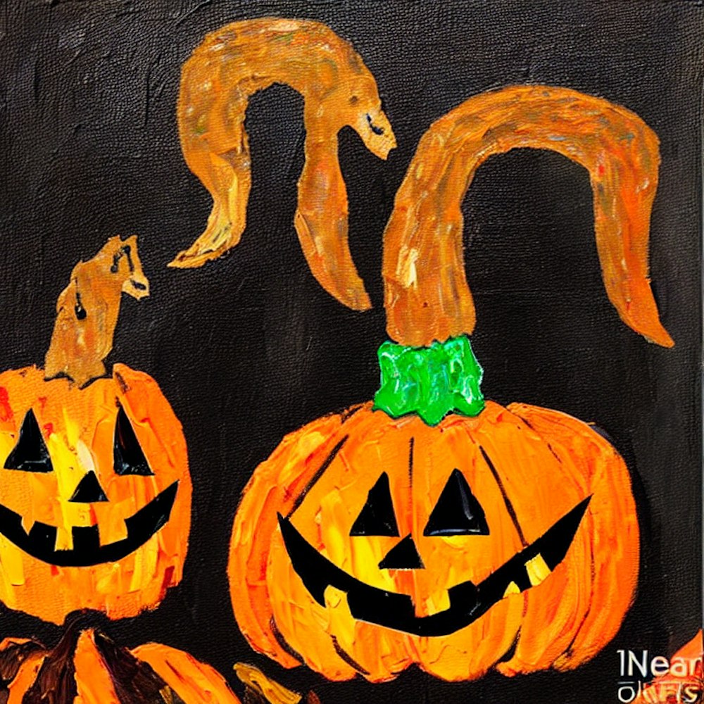 Goat head and jack-o-lanterns in black and orange