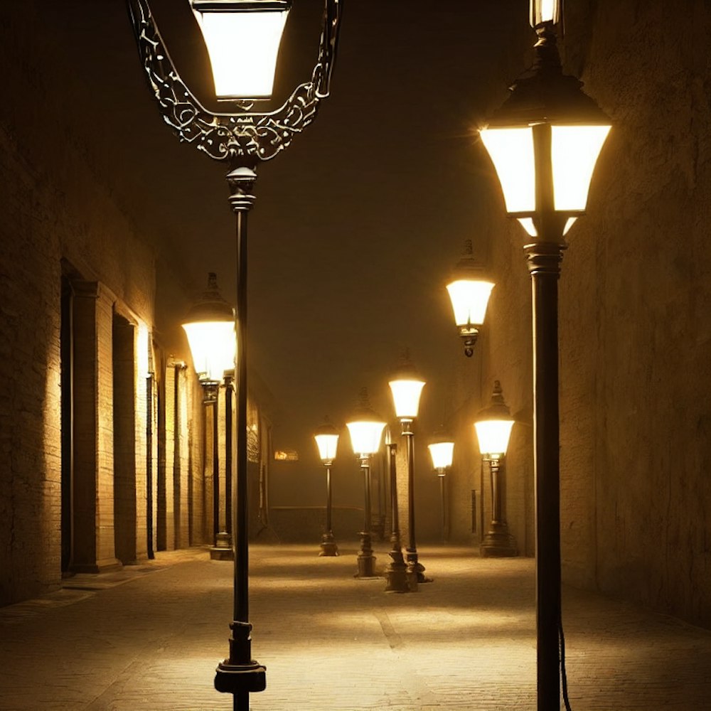 street lamp lit walkway