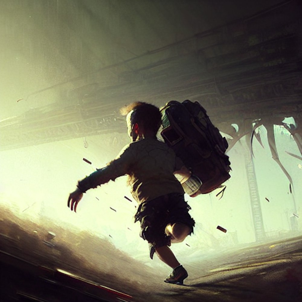 kid running, hyper detailed, cinematic lighting, album cover