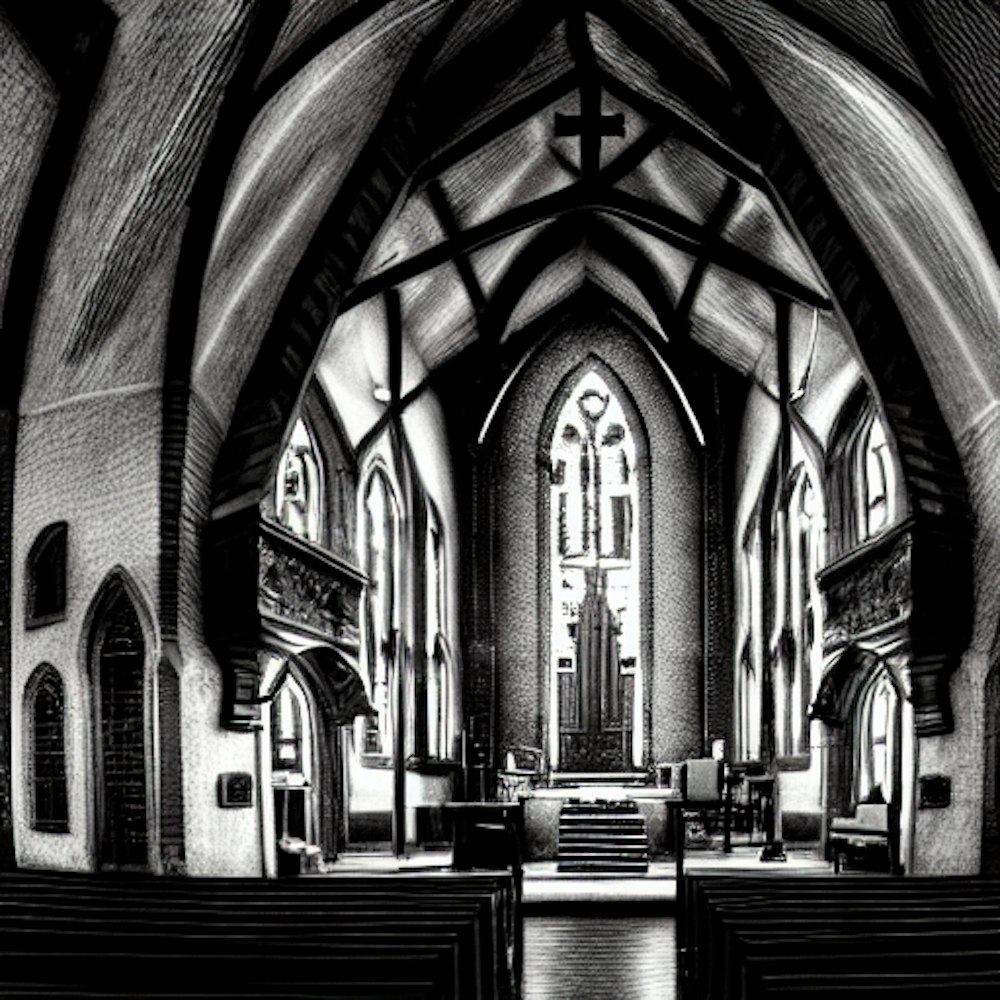 Picture to a different dimension, church, fire, Pentecost, black and white, fine detail, fire on head