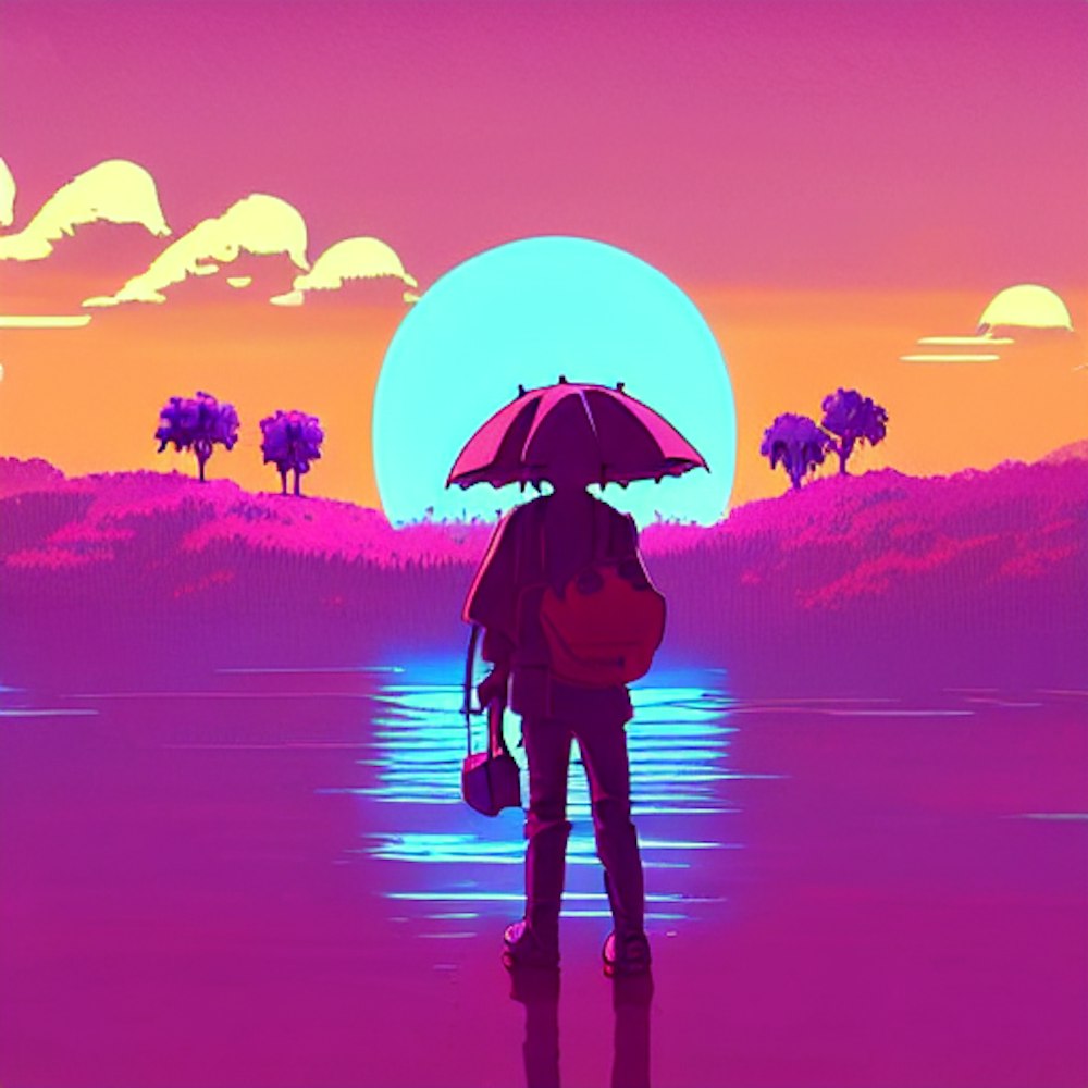 lofi, synthwave, silhouette, studio ghibli