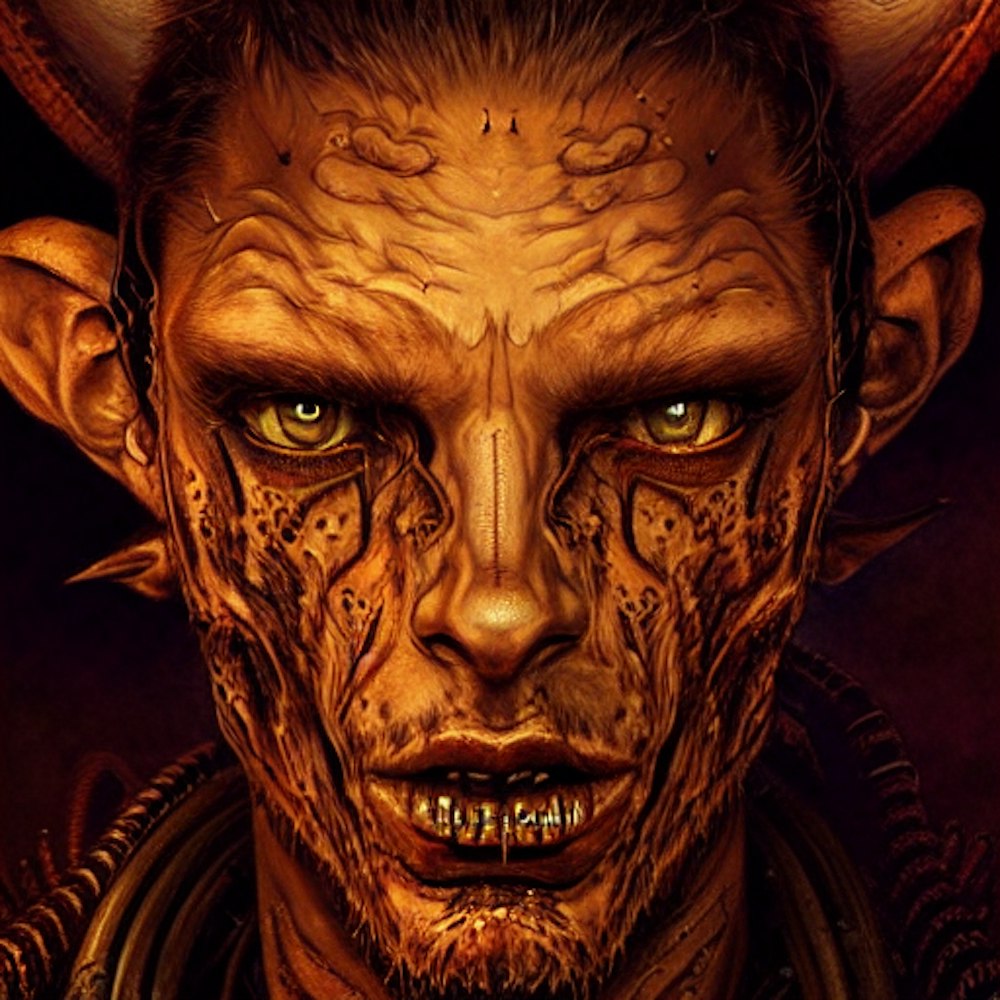 a portrait of a cowboy demon fantasy character portrait, desert alien planet, ultra realistic, cinematic, concept art, wide angle, intricate details, hologram, highly detailed by greg rutkowski, aaron horkey, gaston bussiere, craig mullins, simon bisley,