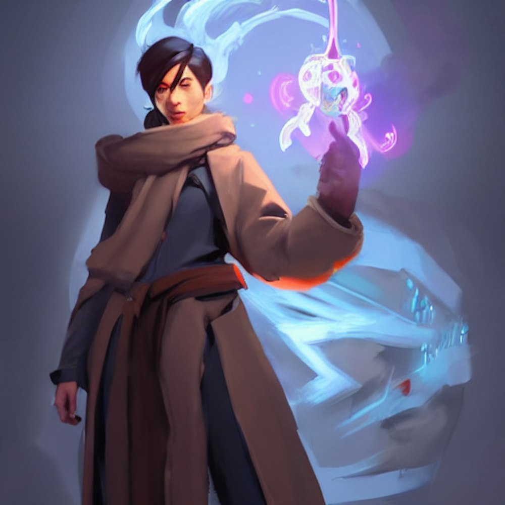 a magic mechanic wearing a robe and a scarf. overwatch character, concept art, character design, artstation trending, by rossdraws, wlop, greg rutkowski, greg manchess