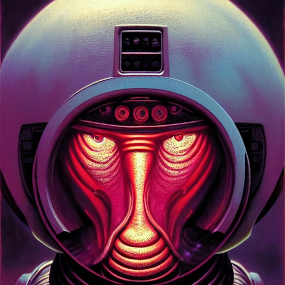 cinematic bust portrait of psychedelic robot from left, head and chest only, exotic alien features, robotic enhancements, desaturated, Tim Hildebrandt, Wayne Barlowe, Bruce Pennington, donato giancola, larry elmore, oil on canvas, masterpiece, trending on artstation, featured on pixiv, cinematic composition, dramatic pose, beautiful lighting, sharp, details, hyper-detailed, HD, HDR, 4K, 8K