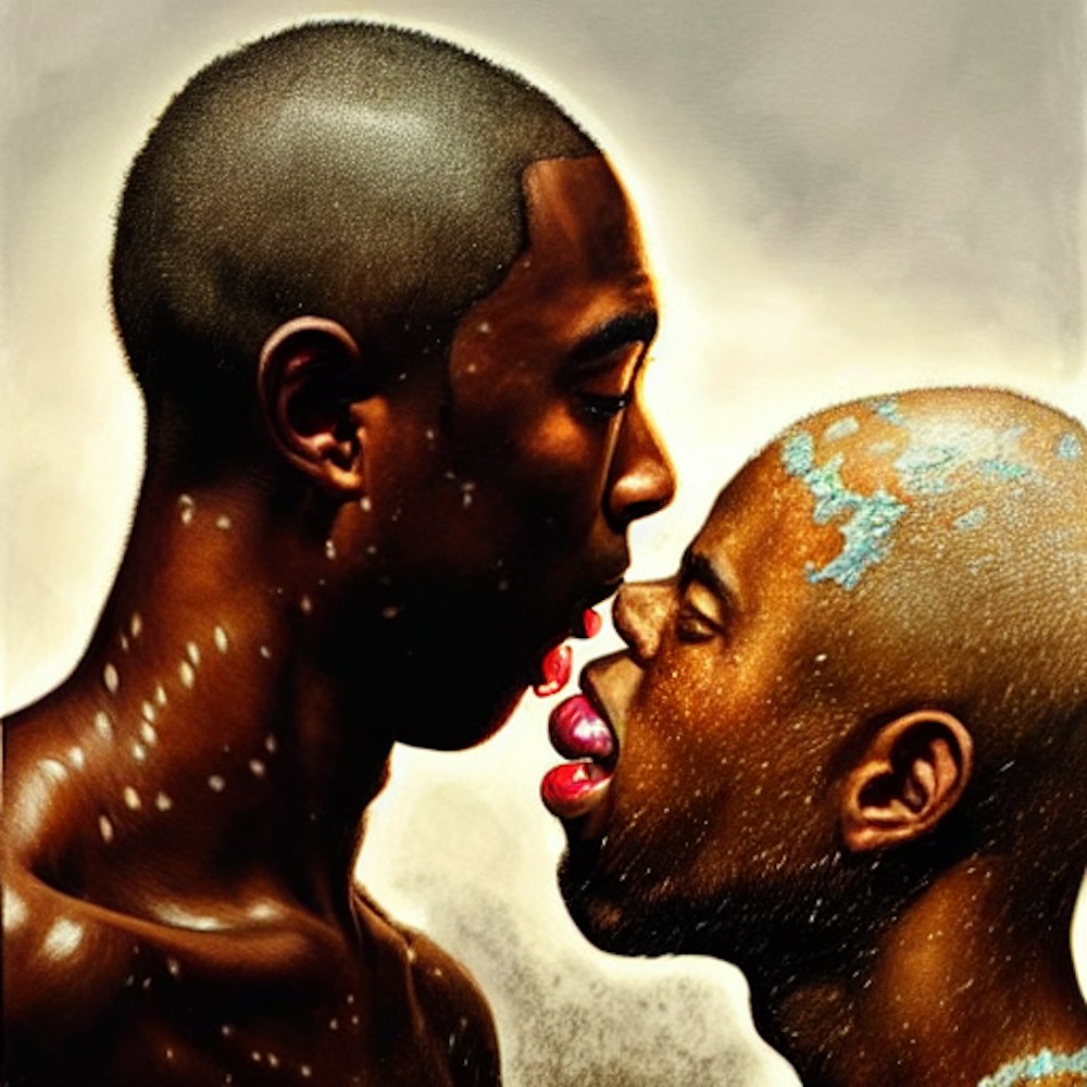 Tyler the creator kissing a white guy with curly hair and freckles