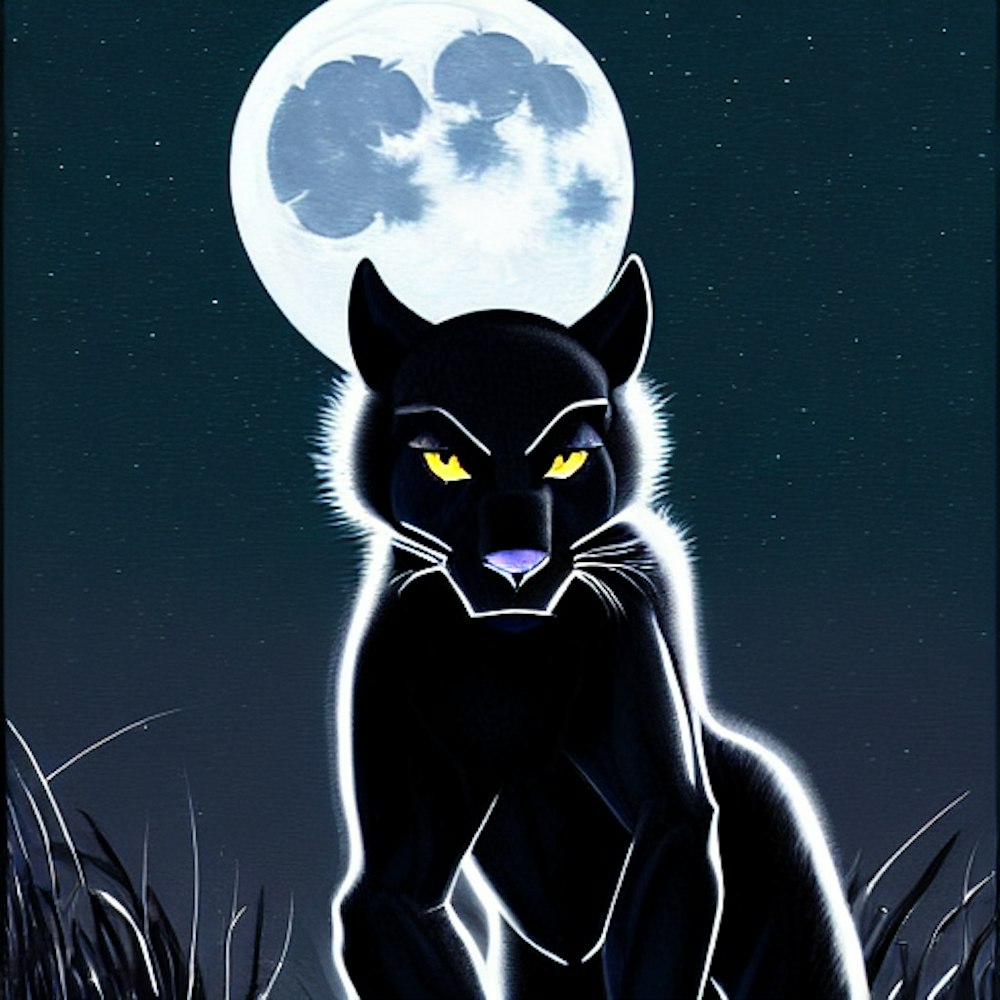 Animal black panther, cub , hunting at night, moonlight , High detailed, dnd, magic, dark