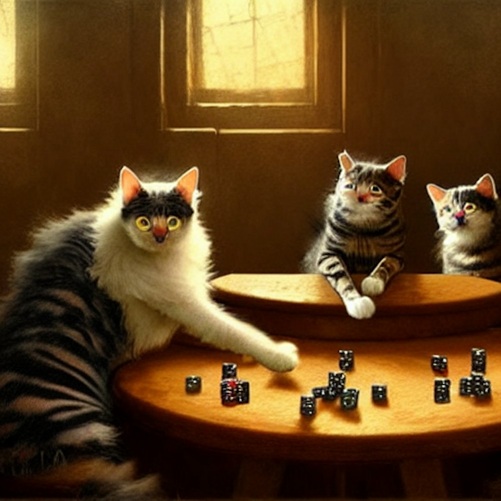 Cats sitting around a table playing cards, gothic