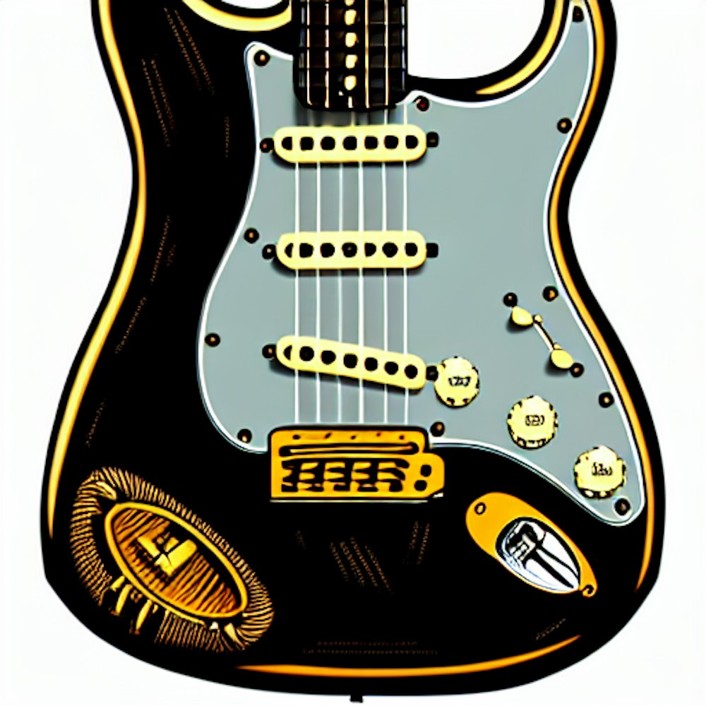 fender stratocaster, cel-shading, intricate design,