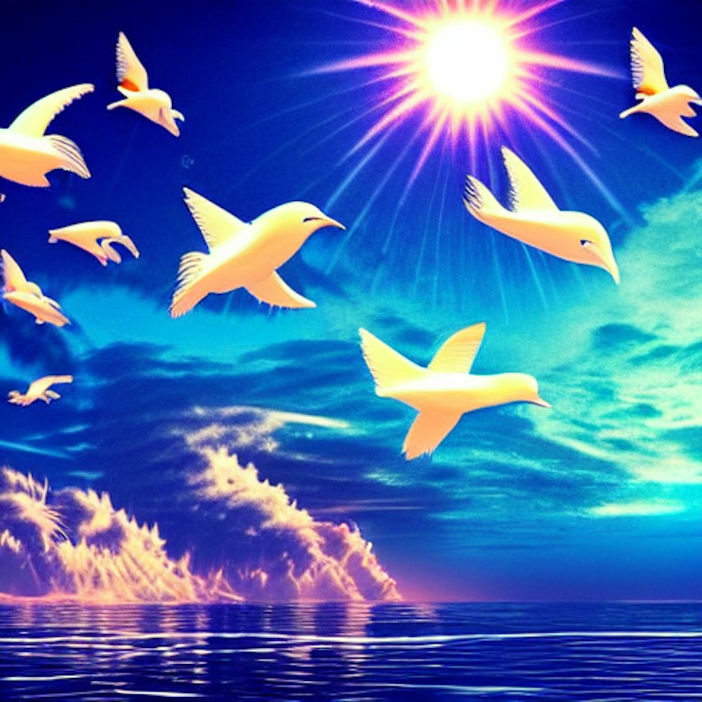 Birds in ocean fishes in the sky