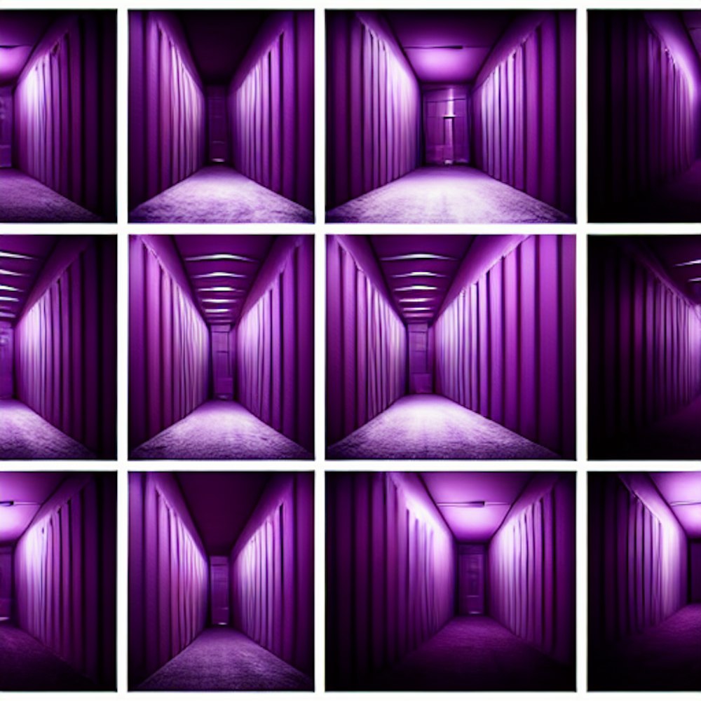 Photo collage of an empty purple room, backrooms, ominous