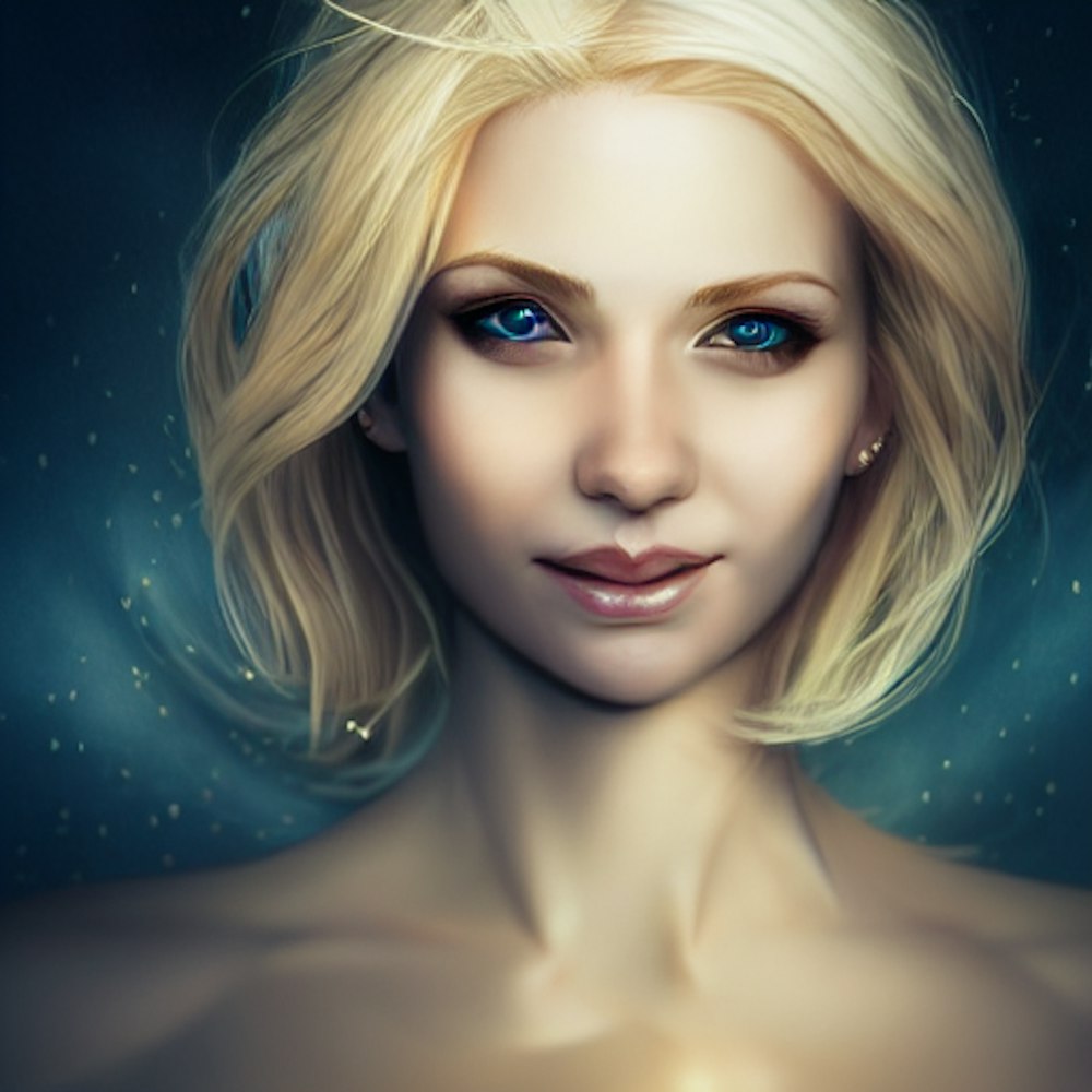 portrait, woman, blonde, smiling, fantasy
