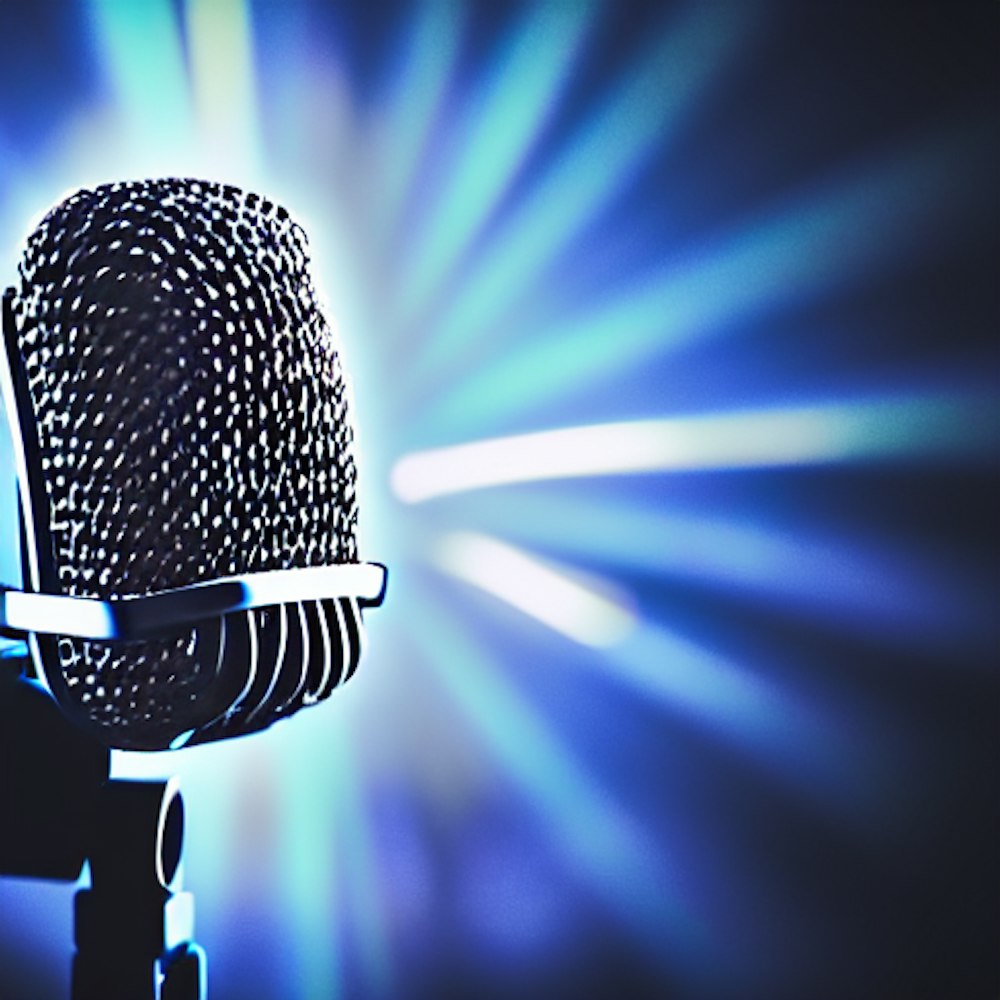 Hand behind back holding microphone