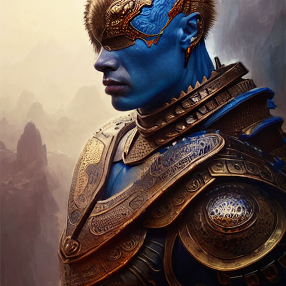 Human warrior wearing blue dragon scale armor