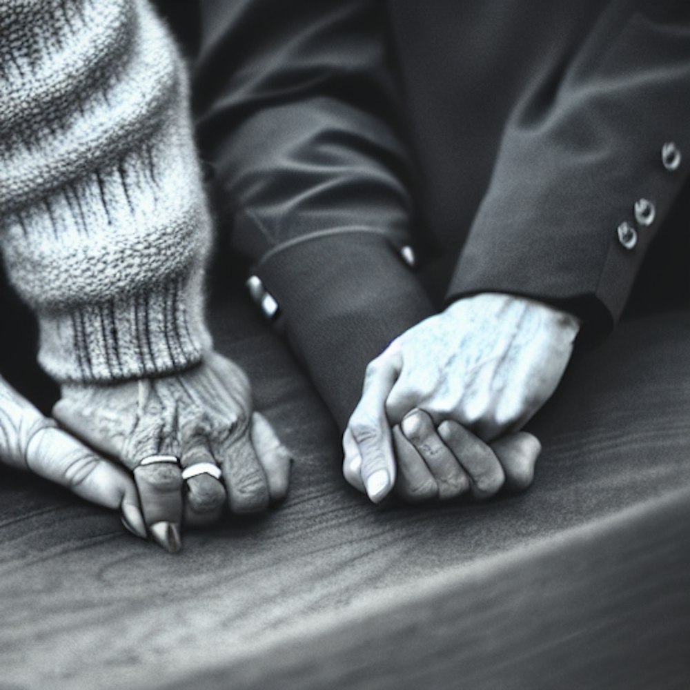 Old couple hold hands