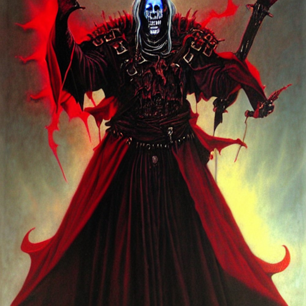 portrait of bloody vecna, warrior, grim reaper, red, drizzt, strahd von zarovich, sanguinius, asmodeus, orcus combined, painted by wayne barlowe