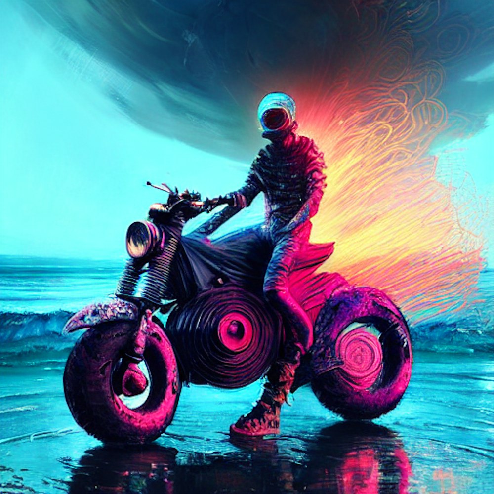 Lil baby raper riding a motorcycle on the west coast, dark background