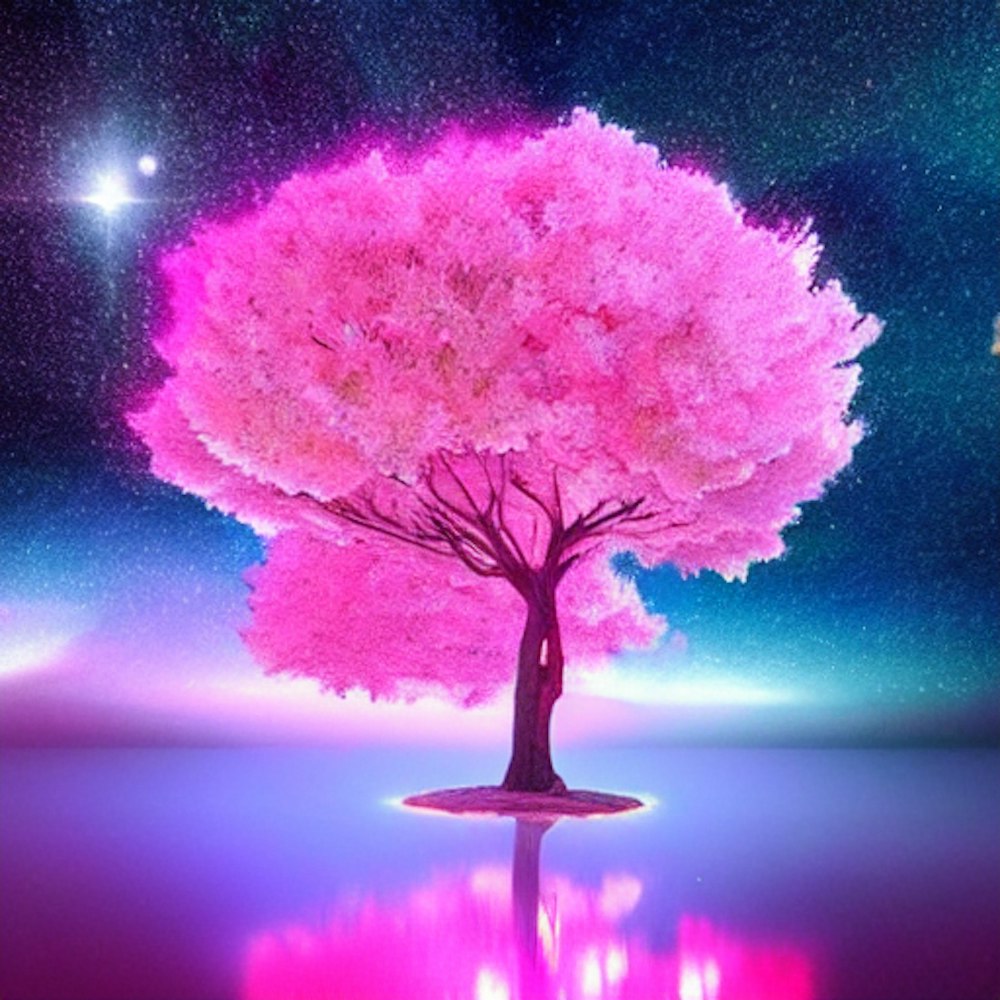 a pink tree in space