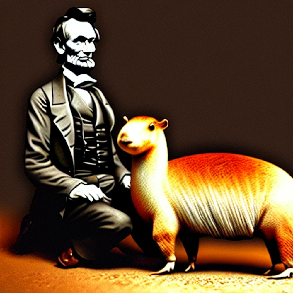 President Abraham Lincoln riding a capybara
