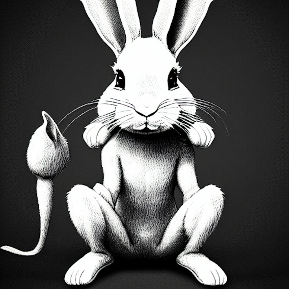 Rabbit holding drumsticks, cinematic