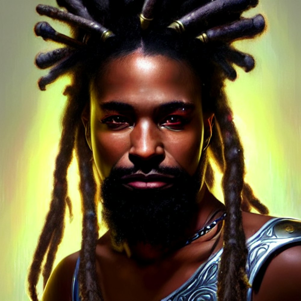 a black man as warrior with dread locks
