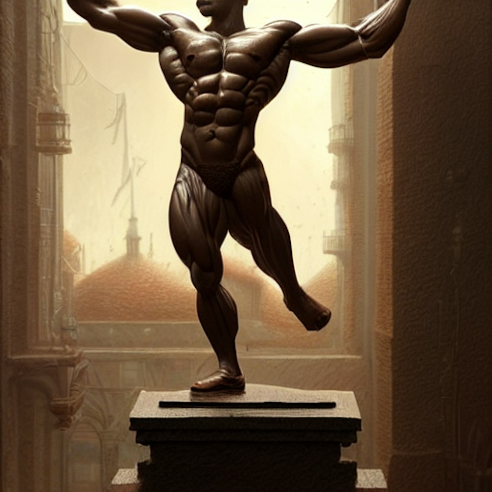 Statue, muscle man, exposin, high detailed, 3 dimensional, 3d, render, character design, algorithm